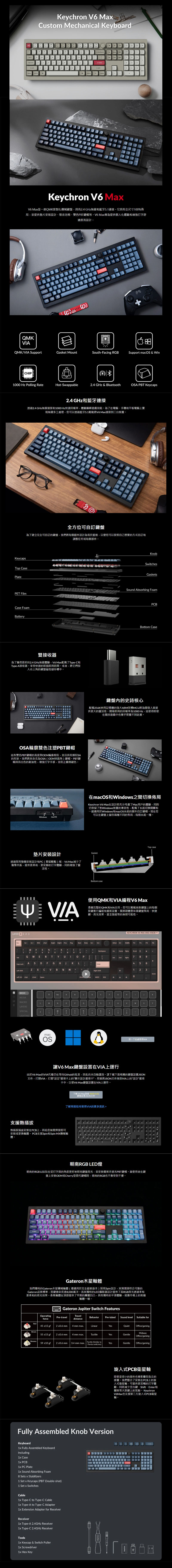 【活動商品】:Keychron V6 Max QMK 無線機械式鍵盤(碳黑色)/2.4g/藍牙/茶軸/中文/熱插拔/Rgb, $3790↘$3290