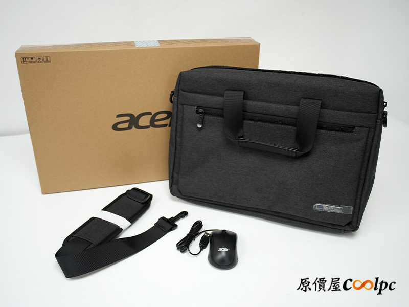 外箱還是大家熟悉的 Acer 經典包裝,側面開孔一眼就能確認型號。打開裡面不只有筆電主角,還有專屬筆電包跟有線滑鼠都幫你準備好了!這就是大家說買 Acer CP 值最高的理由,外出包都幫你省了!