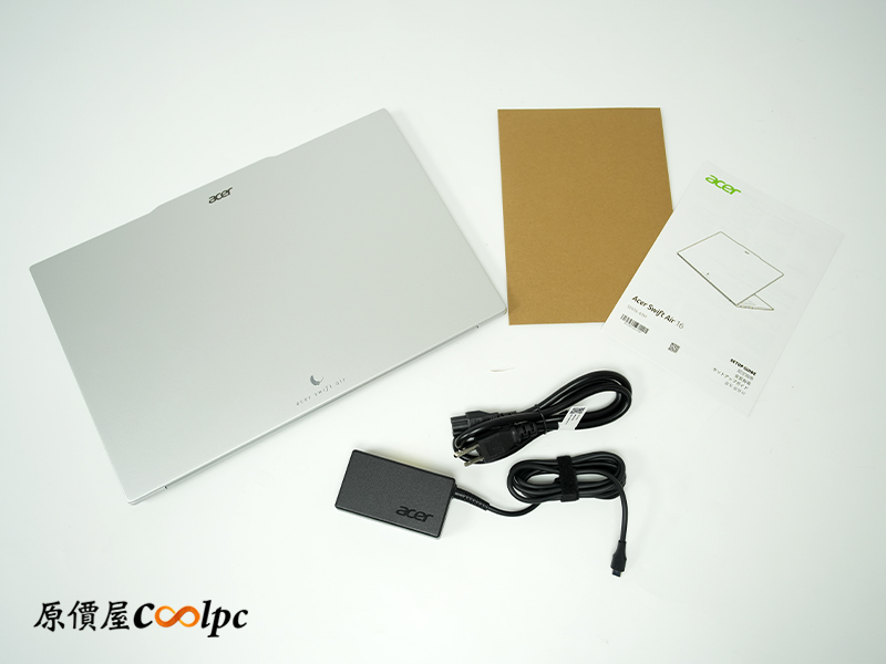 筆電內箱包含 Acer Swift Air 本體,還有說明書、保卡、電壓器。
