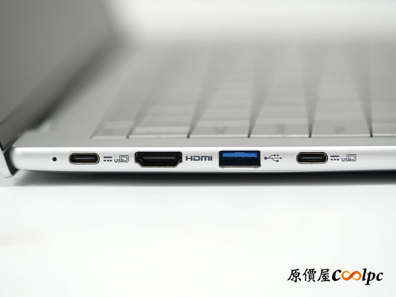 I/O 部分都集中在左側,共有 2 個全功能 USB3.2 5Gbps Type-C (65W DC-in、DisplayPort)、1 x USB Type-A(USB 3.2 Gen 1)、以及 HDMI 1.4。小編覺得小可惜的是 USB A 只有提供一個,有更多需求的話只能在買 HUB 來擴充,但反過來說你可以根據自身需求挑選,也算是不錯的設計。