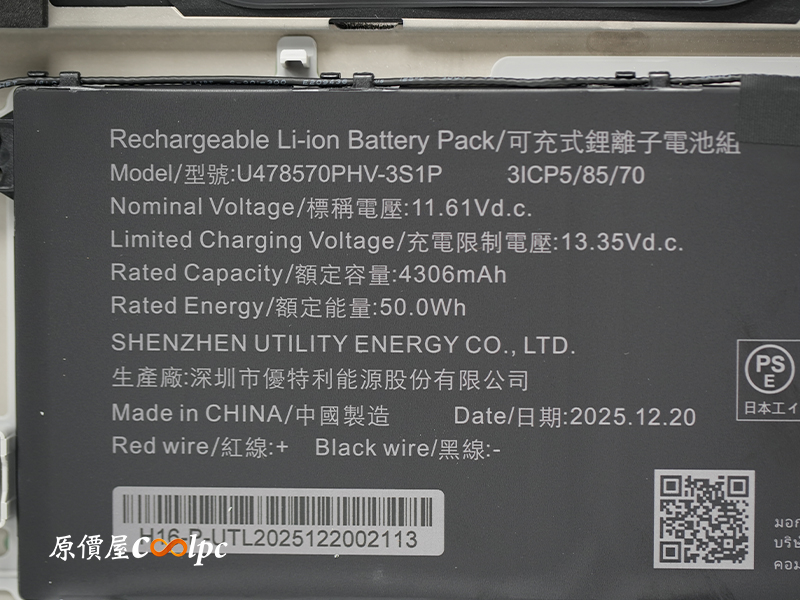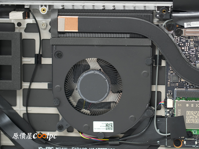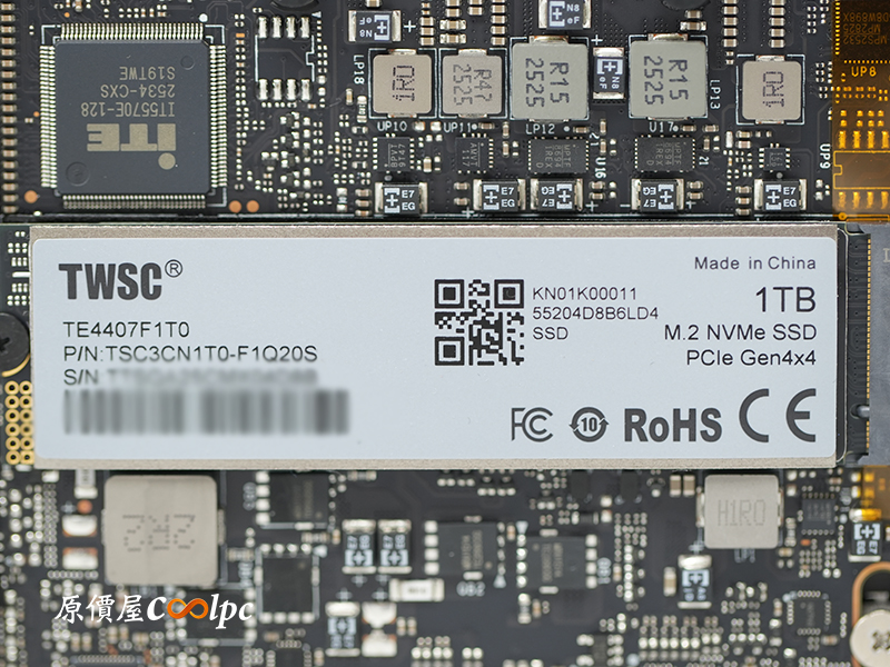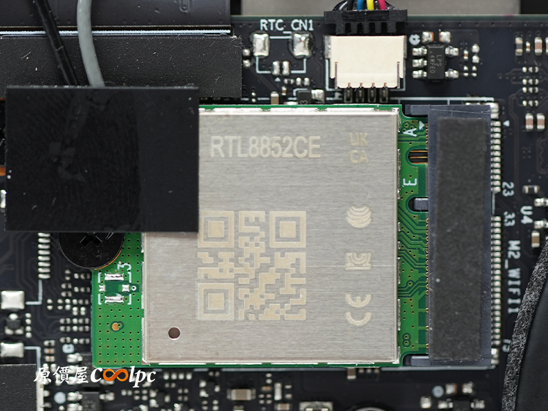 (點小圖放大)接著來看看內部用料吧!內部使用單風扇單導管散熱結構,記憶體顆粒焊在主機板上不可擴充,SSD 為單槽,選用 TWSC 的 1TB Gen4 硬碟,Wi-Fi 6 晶片為 芬維Fenvi RTL8852CE,鋰電池規格為 4306mAh / 50Wh 鋰離池。