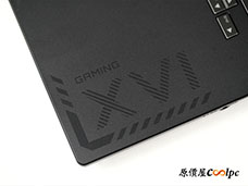 A 面採用金屬材質,整台是帥氣的鈦岩黑,質感相當不錯。不過表面會稍微吃指紋,外觀控要多注意一點。中間那個技嘉 LOGO 用的是銘刻工藝,隨著角度不同會反光變色,酷得很低調。