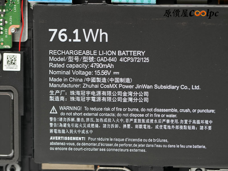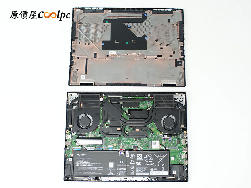 (點小圖放大)主機使用雙風扇加多熱管的 WINDFORCE INFINITY EX 散熱系統,採用 158 片超薄扇葉設計,搭配 3D VortX 立體風道,氣流能快速將廢熱排出。記憶體部分雖然是焊在主機板上,不能擴充有點小可惜,但原廠給到 32GB DDR5-5600,玩遊戲、剪片都綽綽有餘,而且這樣設計反而讓散熱模組能直接覆蓋在上面,熱能傳導更快、更穩。儲存部分出廠附一條技嘉自家的 1TB PCIe 4.0 SSD,還預留一個 M.2 插槽可以再擴充。無線連線部分是 Intel AX211NGW,支援 Wi-Fi 6E 和藍牙 5.2。內建的鋰電池容量為 76.1Wh,兩側各有一顆 2W 喇叭,日常娛樂音量也很夠。