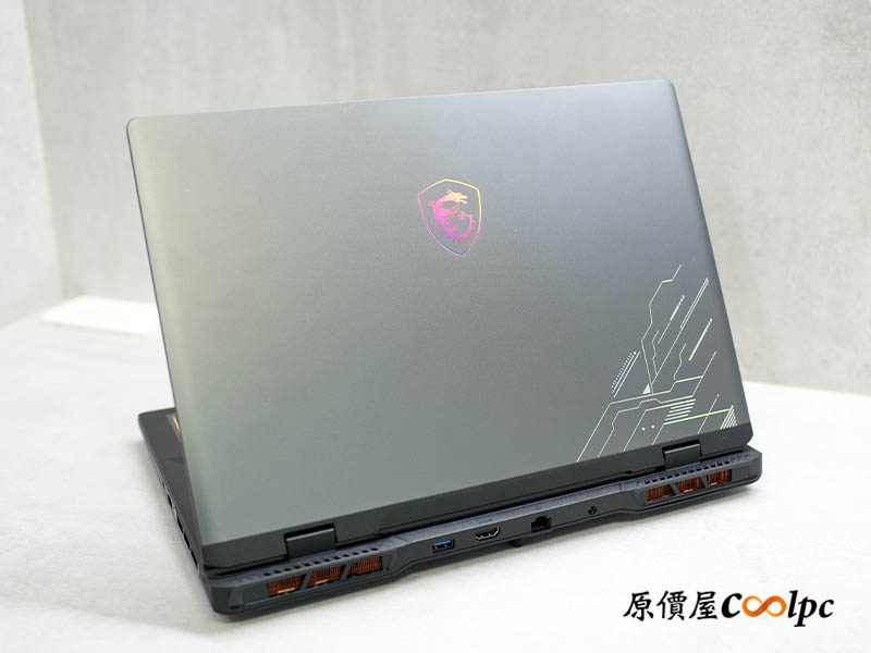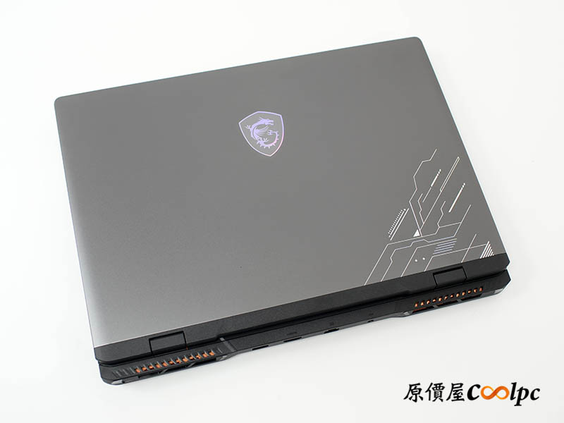 MSI Crosshair 16 HX AI 採用 16 吋機身設計,A 面選用金屬材質打造,觸感紮實且質感細膩。最吸睛的是中央那顆虹膜 MSI Logo,隨角度變換會呈現不同的反光色澤,搭配側邊的電路紋路裝飾,低調中藏不住強悍氣息!