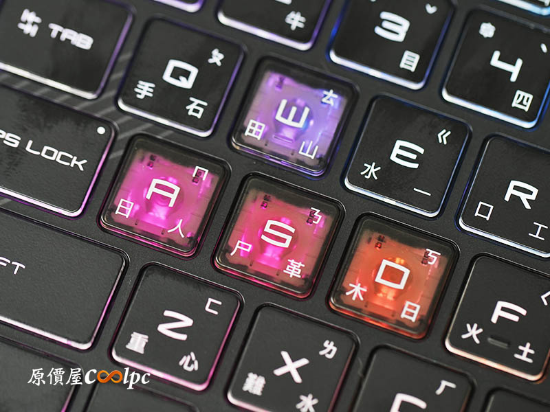較暗環境中鍵盤燈效展示。