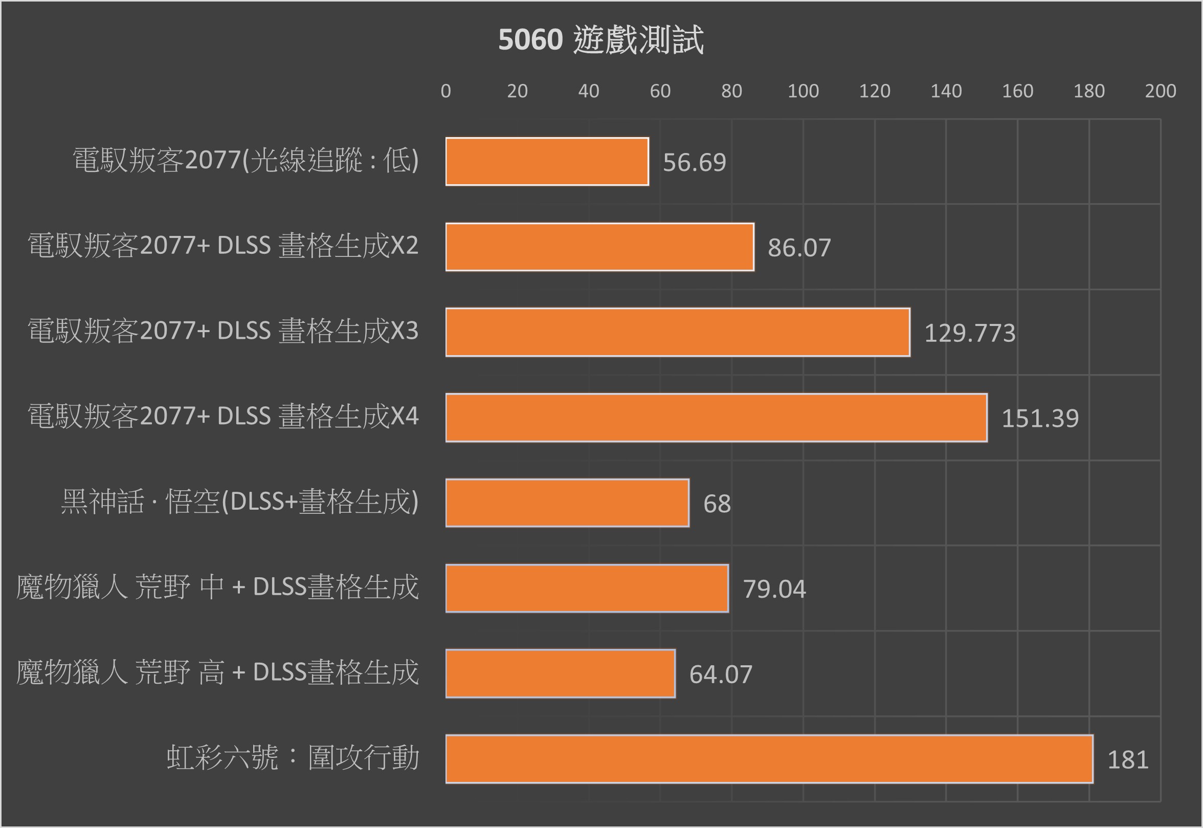 再來是遊戲測試環節,得益於 DLSS4 畫格生成技術,《電馭叛客 2077》 最高有 151FPS 的成績!這還是用系統內建的畫質設定,如果再細條的話,應該還有機會跑更高;而《黑神話:悟空》平均約 68FPS,順順打完全沒問題;再來是《魔物獵人:荒野》,透過官方提供的 Banchermark 最高有 79FPS (DLC買多買少的謎之優化本篇一概不負責!);最後是《虹彩六號:圍攻行動》,最高 181FPS 的亮眼成績讓你在爭分奪秒的戰場上也能看清對手!