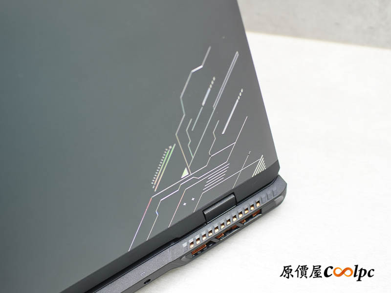 螢幕搭載 16 吋 QHD+ (2560×1600) IPS 等級電競面板,擁有 240Hz 高更新率與 100% DCI-P3 廣色域,流暢度與色彩還原度都無可挑剔。螢幕上方配置 HD 視訊鏡頭並附帶實體隱私開關,安全防護滴水不漏。特別的是,機身採用較高的轉軸設計,不僅提升了螢幕開闔的靈活度,更為後方的散熱孔爭取到絕佳的排氣空間。