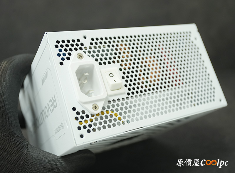 保銳REVOLUTION III S 1000W本體登場,白殼設計兩側加入REVOLUTION III S字樣,整體走一個極簡風格,而且尺寸15 x 8.6 x 14cm(W x H x D),長度僅有14cm非常俐落。