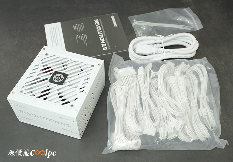 內容物包含REVOLUTION III S電源、模組化線材包、Power Cord、螺絲束帶配件包、說明書。