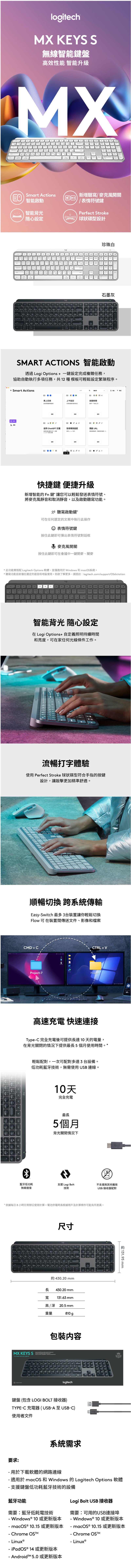 .羅技 MX Keys S 無線智能鍵盤(石墨灰)(920-011596) $3990↘$3390