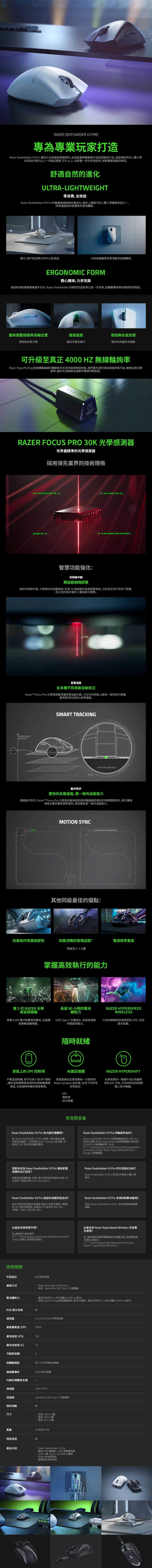 .Razer DeathAdder V3 Pro 無線滑鼠(RZ01-04630100-R3A1-UT) $4990↘$2990