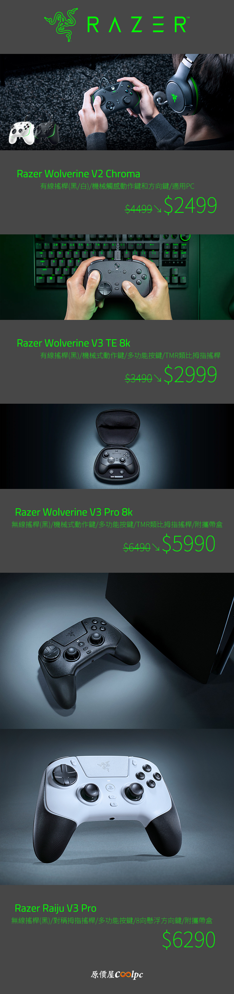 想要極致性價比的玩家,Wolverine V2 Chroma 絕對是首選,只要 $2499 就能擁有黑白雙色的高質感外型,機械觸感動作鍵按下去那個清脆的回饋感,絕對比傳統導電膠手把爽太多~追求競技巔峰的硬核玩家那就選 Wolverine V3 TE,導入黑科技「TMR 類比拇指搖桿」,徹底解決飄移問題還給你 8K 的極速反應速度,這種精準度在場上根本是讀心術等級!預算充足、想擺脫線材束縛的兄弟們,Wolverine V3 Pro 直接攻頂就對了,無線 8K 傳輸加上專屬攜帶盒,專業配備全部給你。而習慣對稱式搖桿的朋友,這次最新款的 Raiju V3 Pro 同步登場,黑白兩色隨你挑, 8 向懸浮方向鍵搓招順到不行,不管是格鬥遊戲還是動作大作都能完美駕馭。