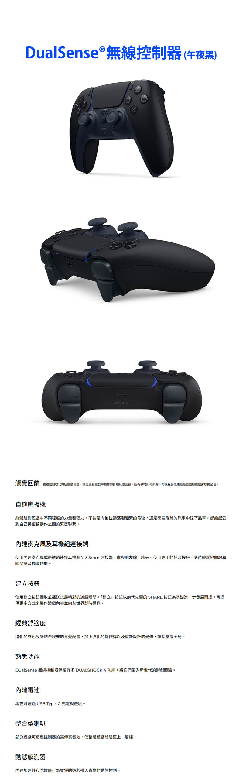 .SONY DualSense 無線控制器(午夜黑)+電腦USB連接線(ASIA-00500) $2280