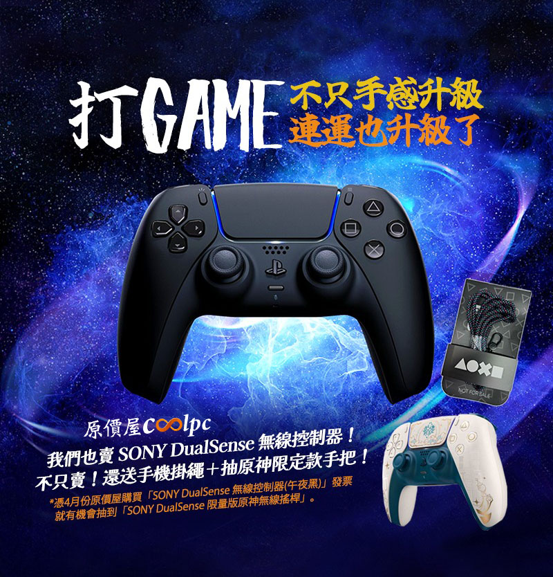 憑 4 月份購買「SONY DualSense 無線控制器(午夜黑)」的發票,有機會抽中「SONY DualSense 無線控制器(原神限量版)」!(僅 1 名 4 月底開獎!於原價屋 FB 粉絲團以及原活動文章公布)