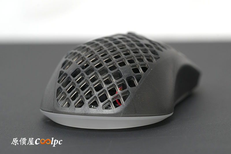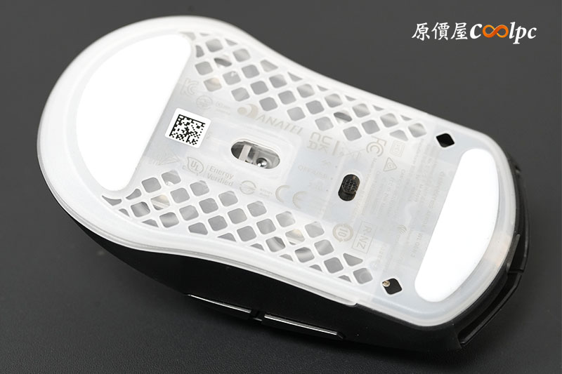 電源切換配置在滑鼠底部,而模式切換也設計在靠近感應器的區域,鼠底並採用 PTFE 腳貼,滑動更順更穩。