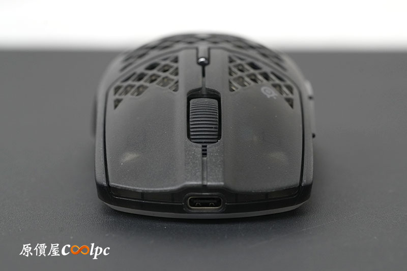 鼠身的前端就是 TYPE-C 的連接埠,提供連接線材連接使用的充電。充滿後擁有超強的續航,可使用 2.4GHz 無線連接 120 小時,而藍芽連接更是高達 200 小時。