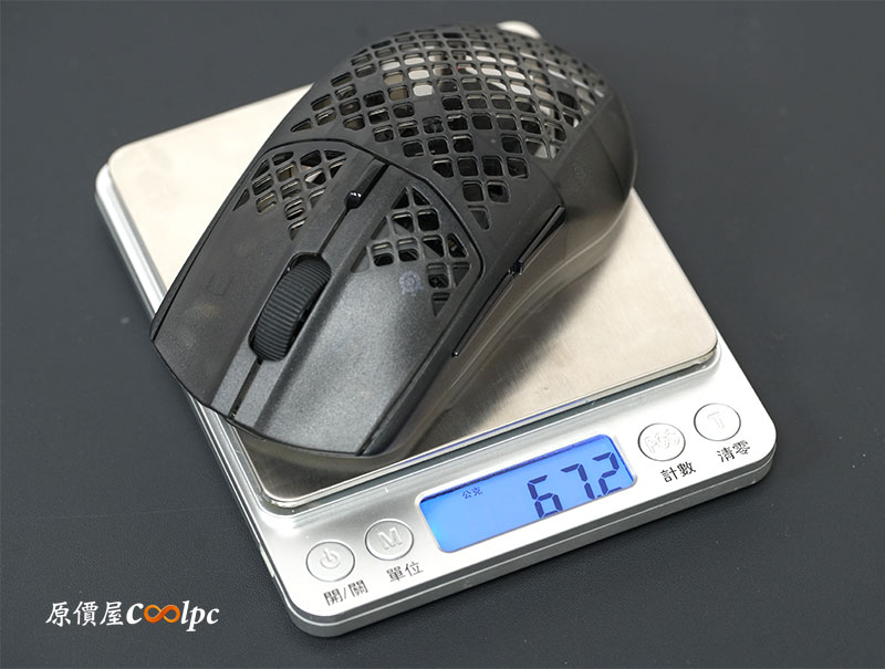 既然標榜輕量化設計,那我們也實際秤一下… 約 68g 左右,符合官方主打超輕量定位,拿起來第一感受就是真的蠻輕的。