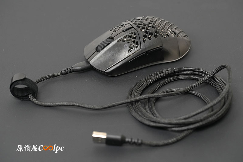 雖然滑鼠本身算是低調的純黑色,沒有太多的花紋或圖騰。但在鼠身上還是能看見 SteelSeries 的經典 LOGO。