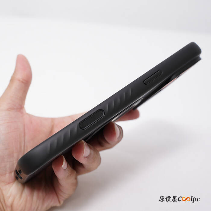 實際安裝好的樣貌,螢幕旁邊會有一點空隙不會完全密合,是為了讓使用者更好拆卸手機殼。