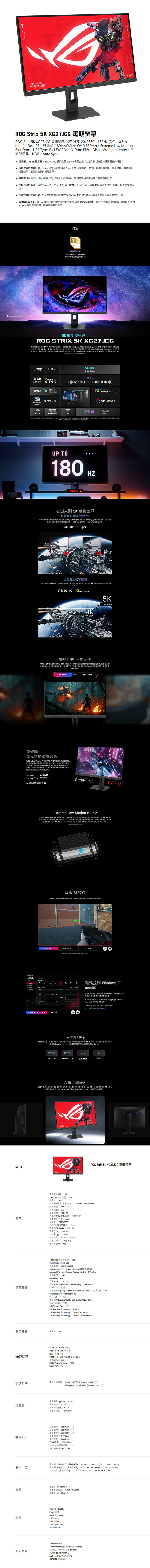 .華碩 ROG Strix 5K XG27JCG〈2H1P1C/IPS/HDR600〉5K-180Hz/QHD-330Hz 雙模式,$26900↘$24888