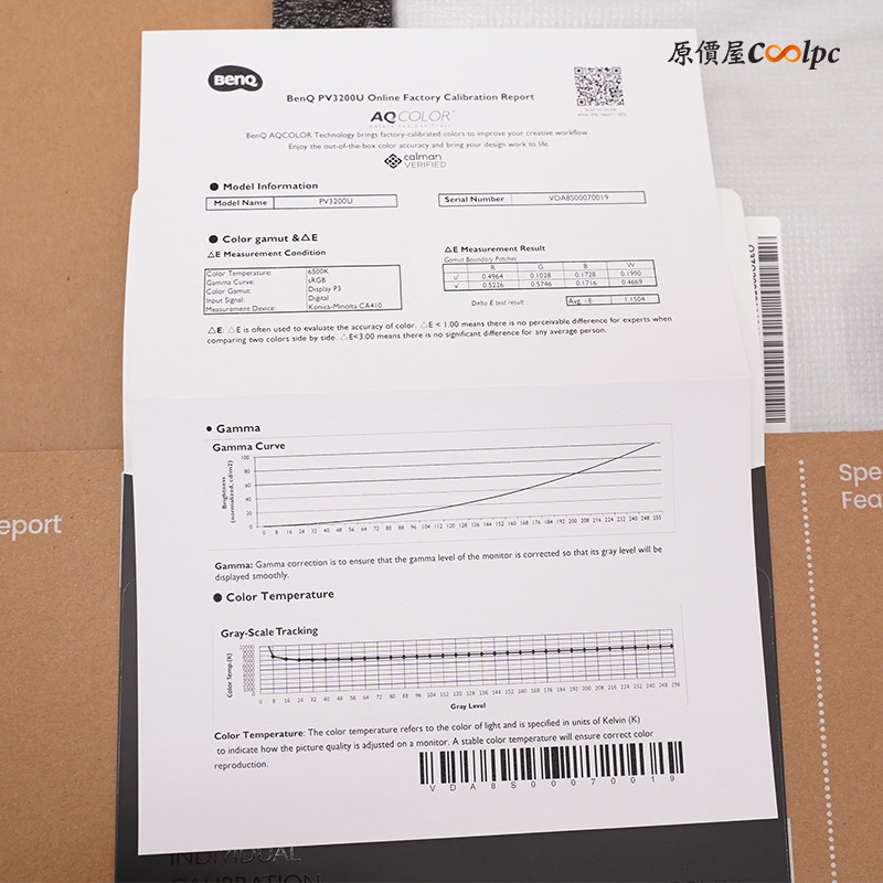 內附一張工廠校色報告,所有功能皆經嚴格測試,保證色彩一致性。