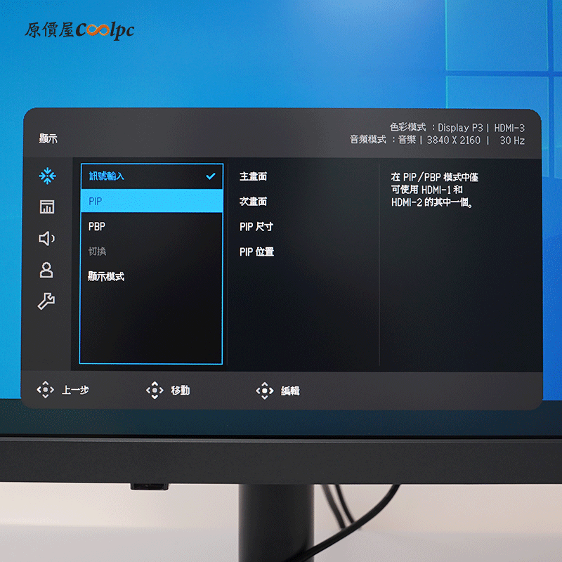 螢幕本身也有 PIP/PBP 功能。