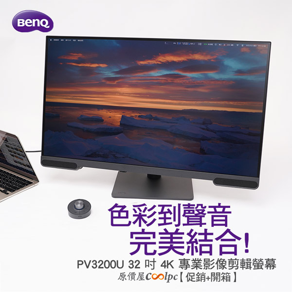 【促銷+開箱】32吋精準色彩與 2.1 聲道完美結合!BENQ PV3200U 4K 專業影像剪輯螢幕限量優惠中。