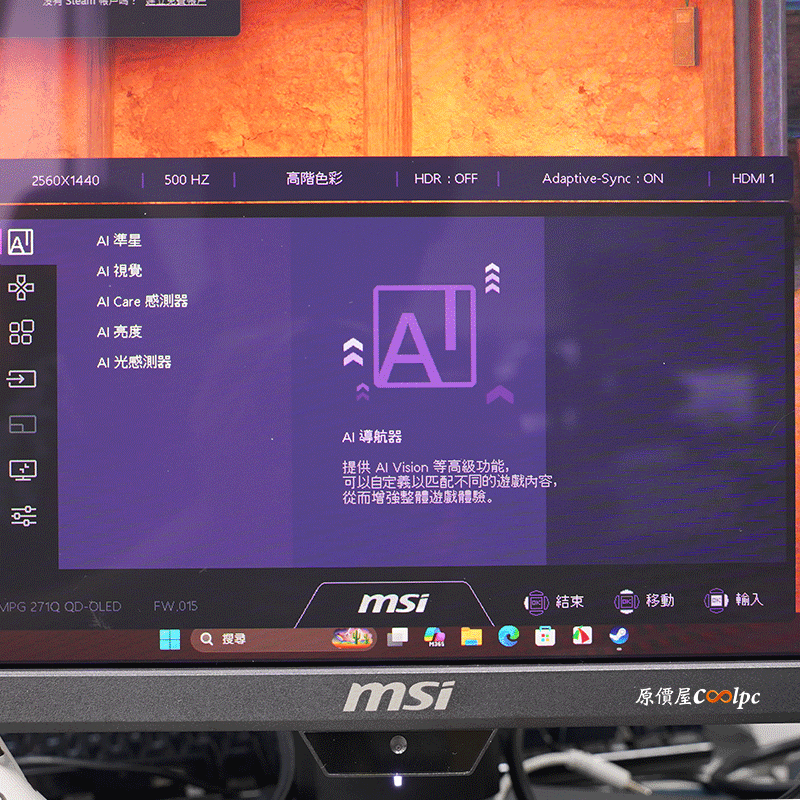 除了 AI 智慧感測器之外,還有內建 AI 準星、 AI 視覺、AI Care 感測器、AI 亮度、AI 光感應器。