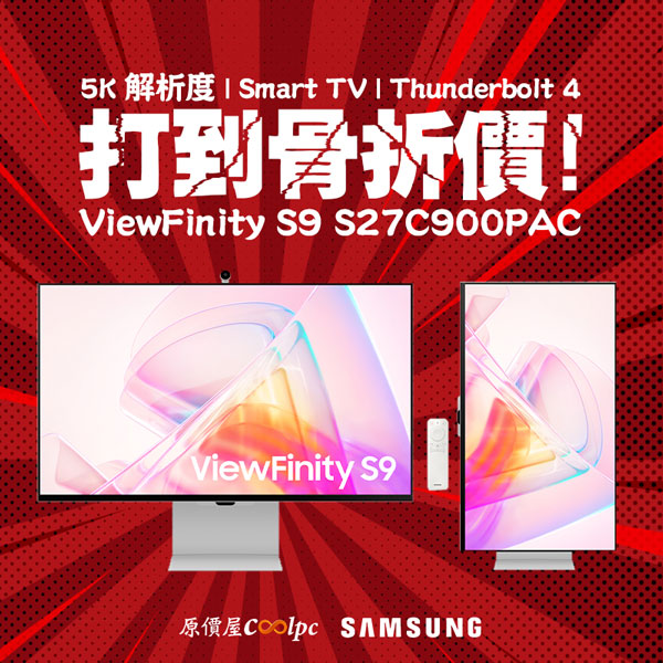打到骨折價!SAMSUNG ViewFinity S9 S27C900PAC 5K Smart TV 螢幕限量優惠。