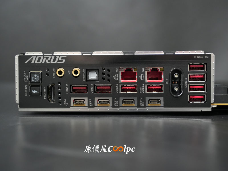 這 I/O 配置不僅高規又豐富,有雙 5G LAN、雙 USB4(40Gbps) 連接埠(DP輸出功能視 CPU 而定),還有 USB 20Gbps(Type-C)、數個 USB 10Gbps 介面、Wi-Fi EZ-Plug  快拆天線。同時整合多個實體功能按鍵(Power、Reset、Q-FLASH PLUS、CLEAR CMOS)。