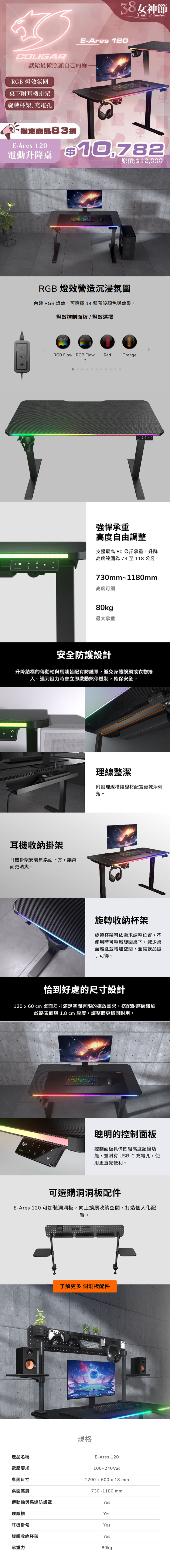 .Cougar E-Ares 120 電動升降桌 $12990↘$10782