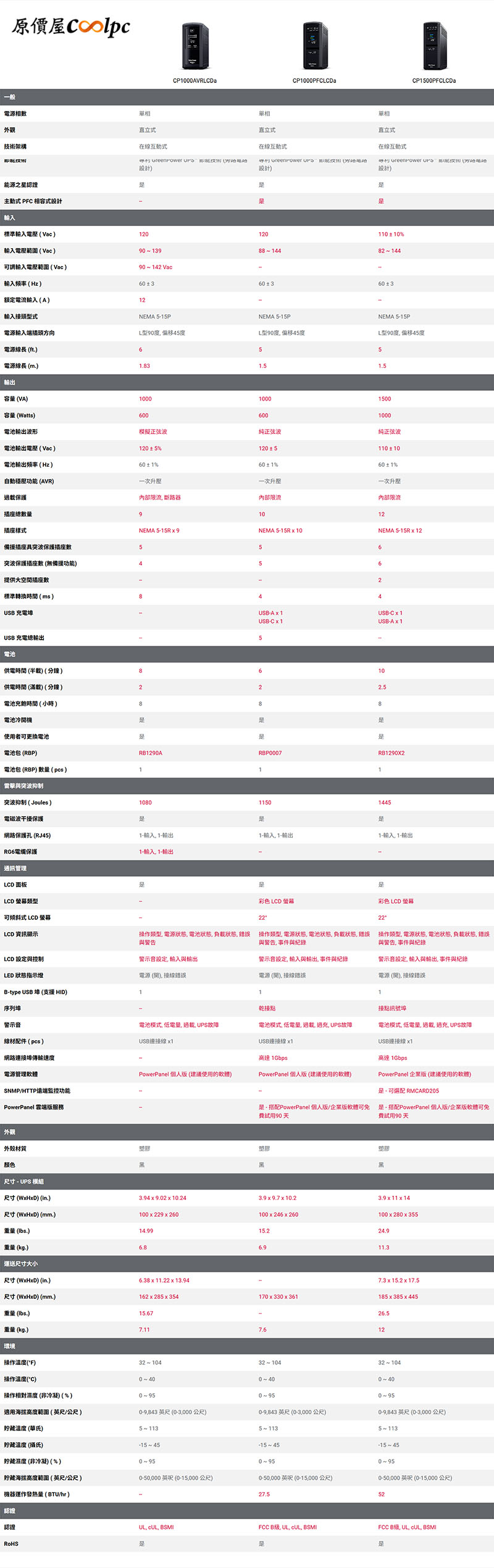 這次活動的三款 UPS 都是具備突波保護的在線互動式機種。分別是模擬正弦波輸出的 CP1000AVRLCDa,以及採用主動式 PFC、純正弦波輸出的 CP1000PFCLCDa 和 CP1500PFCLCDa。CP1000AVRLCDa 是家用或小型辦公的好選擇,支援 1000VA / 600W 輸出功率、內建 AVR 自動穩壓,能穩住電壓、避免跳電麻煩,LCD 螢幕還能清楚顯示電壓與電池狀態,一眼就知道家裡設備的情況。而 CP1000PFCLCDa 則是更進階的機型,像是高階遊戲主機或 NAS 就非常適合。1000VA / 700W 輸出功率、純正弦波、主動式 PFC,能提供乾淨穩定的電力,避免高階設備受到電壓波動干擾,而且同樣配有 LCD 螢幕方便監控。如果你的設備比較吃電,那就可以選擇容量更大的 CP1500PFCLCDa。1500VA / 900W 輸出功率,電力更足、備援時間更長,另外還支援可選配的 HTTP 遠端監控功能,家裡若有狀況可以第一時間知道,搭配 PowerPanel 電源管理軟體還能自動關機,避免設備受損。提醒大家一下,在購買前可以先估算一下設備的總瓦數,然後再加上 20%~30% 的安全預留容量,這樣才有充足的時間完成工作存檔並關機,這點要特別注意唷!
