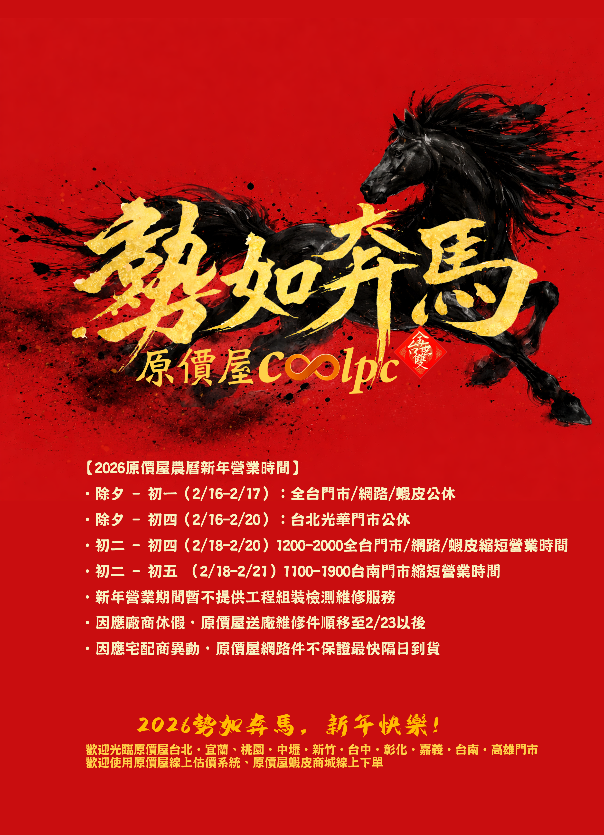 ‧新年營業期間暫不提供工程組裝檢測維修服務