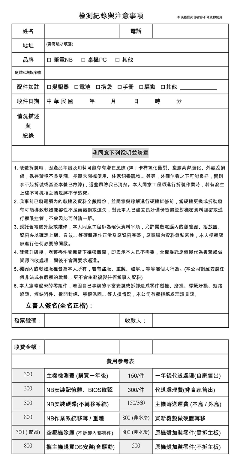 人為故障若原廠可修復,除了予您回報代理商報修價格外,運費來回都必須予您收取(您寄來自付運費,我們寄回以運費到付方式寄件)