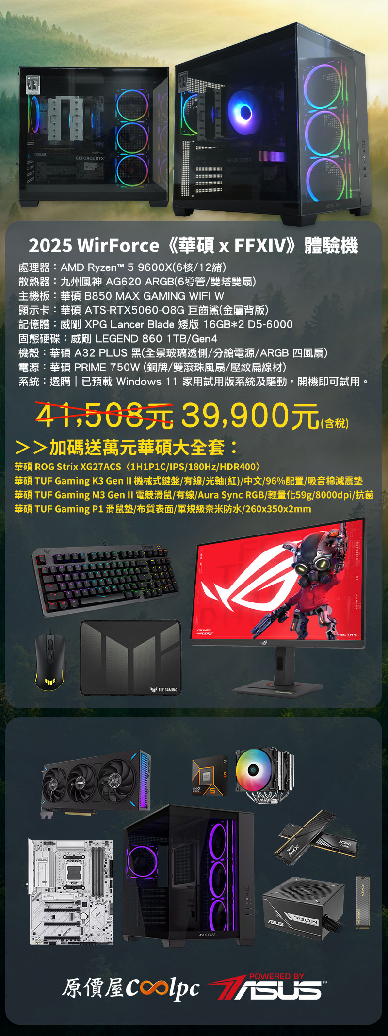 萬元華碩全套 0 元送!2025 WirForce《華碩 x FFXIV》體驗機釋出。