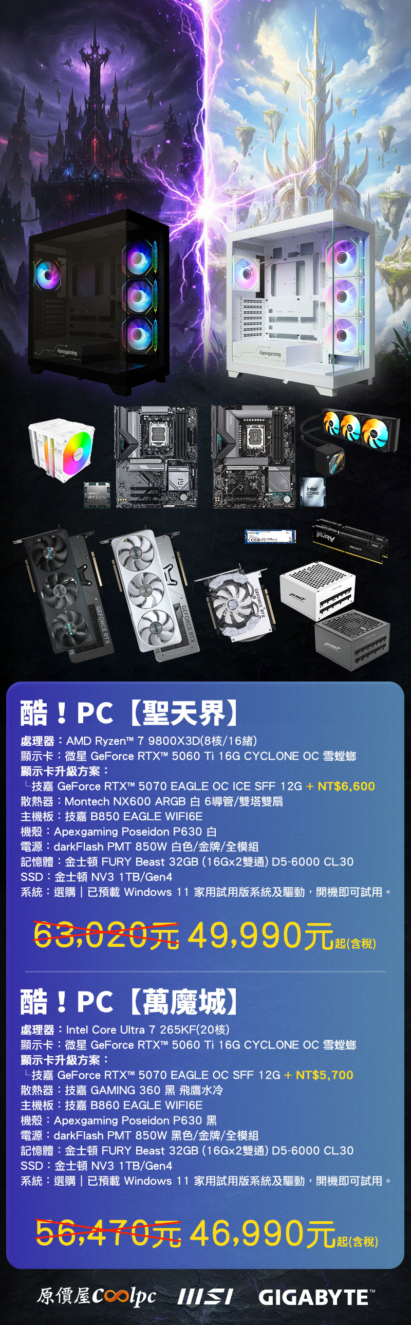 酷!PC【聖天界】NT$63,020↘NT$49,990 起|限量 100 台