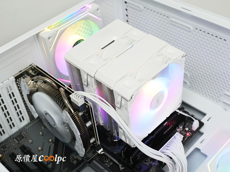 Montech NX600 ARGB(白)雙塔雙扇散熱器:6 根熱導管與 ARGB 雙風扇強力排熱,白色系塗裝完美契合聖天界的純潔美學。