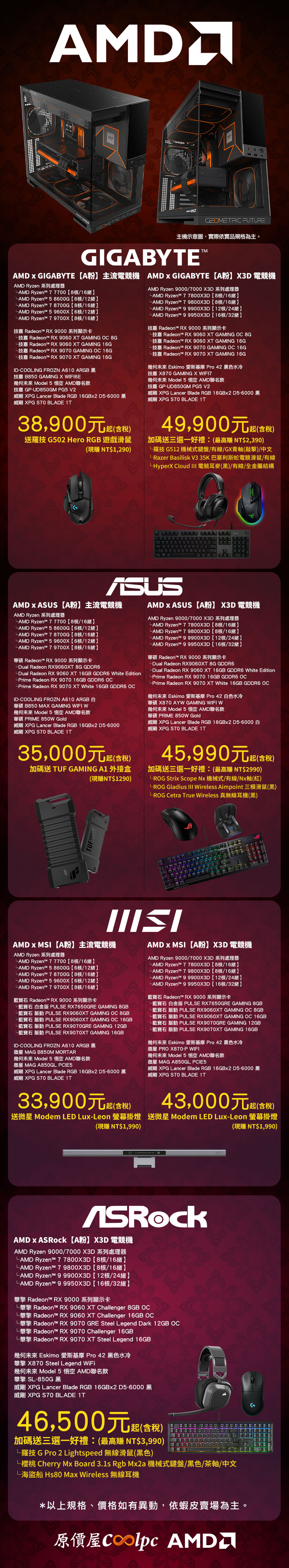 AMD x ASRock【A粉】電競機 NT$46,500 – NT$69,900
