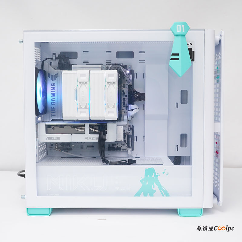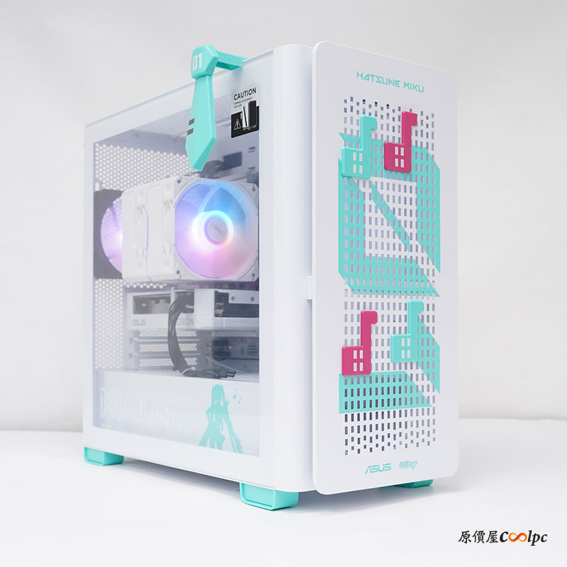 在這絕美的外觀之下,原價屋秉持一貫的 DIY 精神,絕不因聯名而妥協性價比。所有零組件均嚴格篩選,並且獲得華碩支持,價格依然維持親民,採用經典遊戲神 U AMD Ryzen 7 7800X3D、銀白配色 B850 主機板與 RX 9060 XT 白色獨立顯示卡,配上 32GB 大容量記憶體與 1TB 高速 SSD 固態硬碟,無論是 2K 暢玩 3A 遊戲大作,還是影音創作,都能游刃有餘地,提供強大火力。此外更具備 PCIe 5.0 M.2、Type-C(20Gbps)、2.5GbE 網路埠與 Wi-Fi 7 無線網路等豐富的 I/O,以因應未來擴充需求!為了滿足粉絲的效能需求,我們同時提供靈活的升級方案,追求最佳遊戲效能,可加價升級最新世代的 R7 9800X3D 與 PRIME RX 9070 XT 或 PRIME RTX 5070 Ti 顯示卡,輕鬆應付 4K 3A 遊戲大作,甚至是跑生成式 AI 都不是問題。這頂級規格與初音未來完美結合,讓每一位粉絲都能輕鬆擁有屬於自己的初音未來夢幻主機。