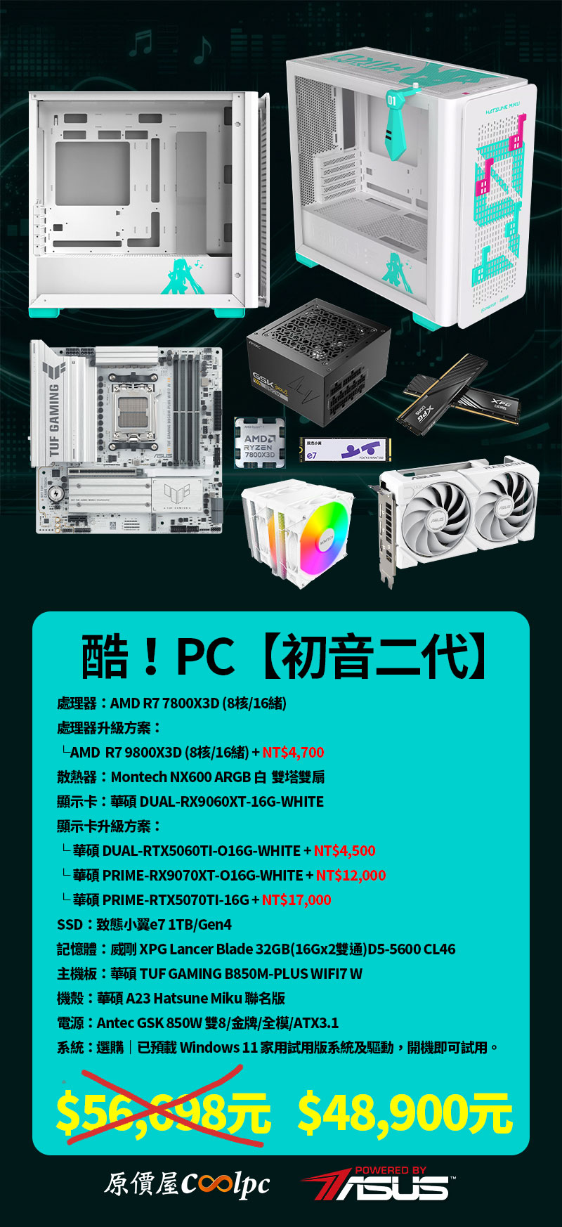 酷!PC【初音二代】NT$56,698元 NT$48,900元起