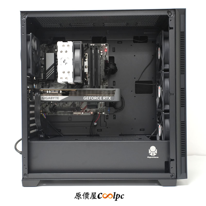 * 視博通 SAF100 靜音機殼 & 技嘉 GP-P650G PG5 金牌電源:機殼採用 0.7mm 厚實 SPCC 鋼板,並在雙側與上方三面配置樹脂隔音墊主動降噪,完美封印內部噪音。內建前 3 後 1 共四顆 12cm 靜音風扇,是重視靜音與散熱的玩家最佳首選。電源符合最新 ATX 3.1 與 PCIe 5.1 標準,並通過 80 PLUS 金牌認證,內建 12cm 靜音風扇,全套配置以靜音為最大考量!