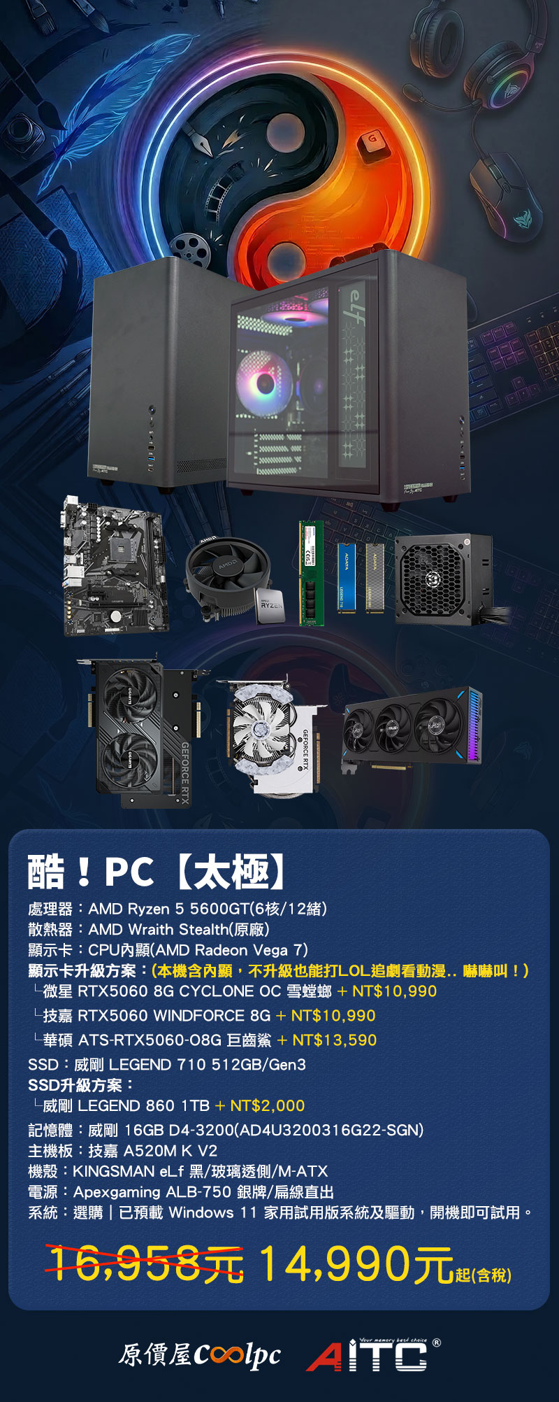 酷!PC【太極】NT$16,958↘NT$14,990 起|限量 200 台