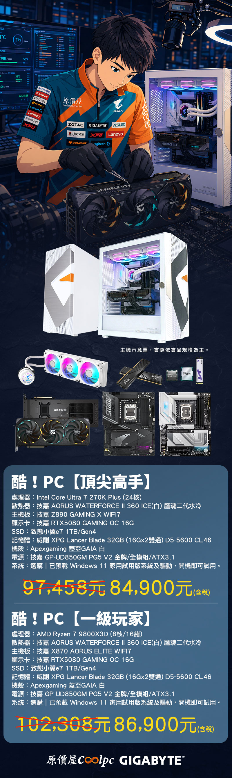 無論您是追求最新 Intel Core Ultra 7 270K Plus(24核心)運算巔峰的酷!PC【頂尖高手】,還是遊戲王者 Ryzen 7 9800X3D 的酷!PC【一級玩家】,我們不僅為您扛下超過萬元的漲幅預算,更要讓您透過直播親眼見證從單品到神器的進化過程。由於預算上有嚴格總量管控,本次開放原價屋線上估價系統下單,可以選擇宅配直達或至全台門市親自點交,感受業界唯一、安心交機的專業服務!