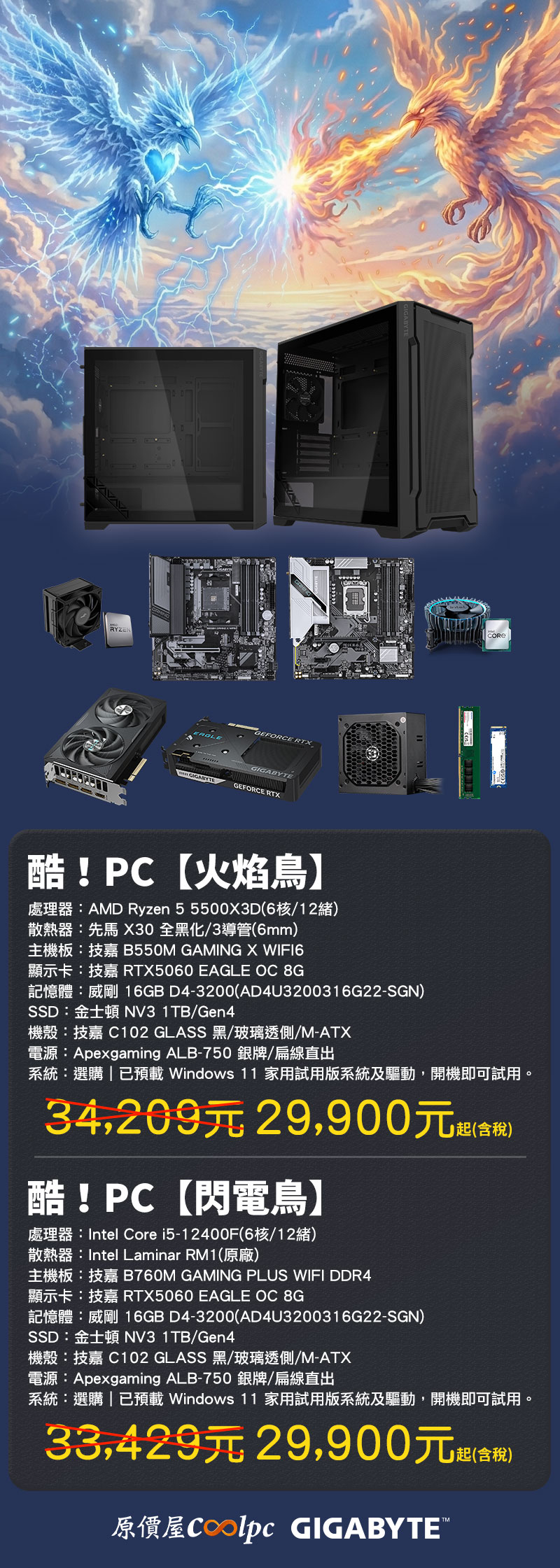 就決定是你了!酷!PC【火焰鳥】【閃電鳥】主機最高不只省 NT$4,000。